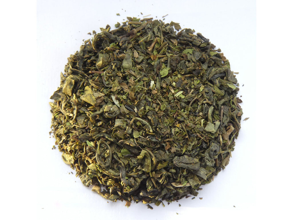 Chinesischer grüner Tee, hauptsächlich Gunpowder, auch ein wenig Chun Mee. Ägyptische Krause Minze. Ein Hauch Spearmintöl. Diese Bestandteile sorgen für das unvergleichliche Bouquet des erfrischenden, exquisiten Tees, der Träume von Nordafrika aufsteigen lässt.