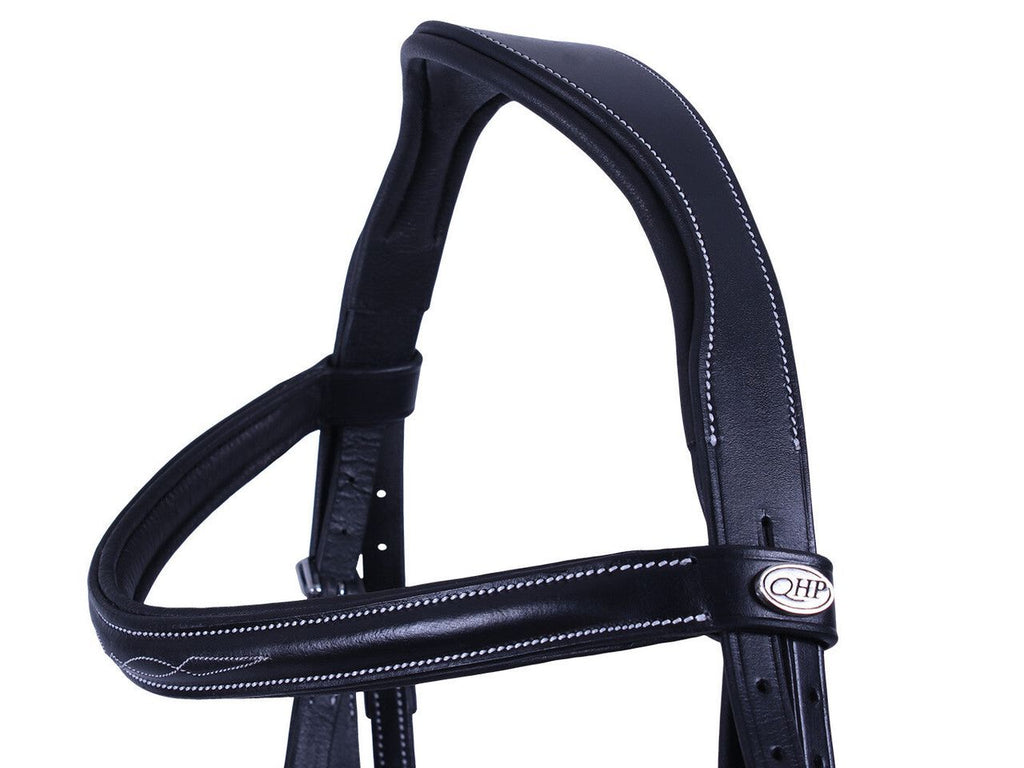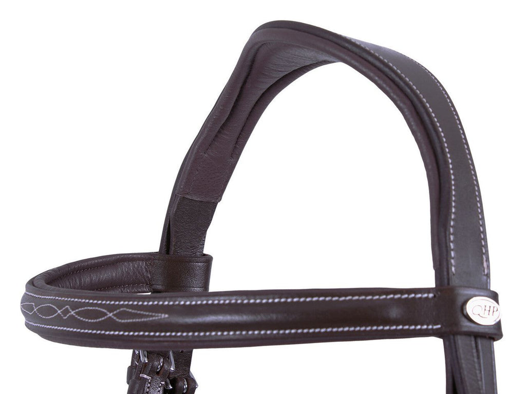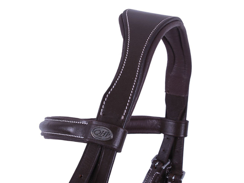 Trensenzaum von QHP mit kombiniertem Reithalfter sowie Luxus-Nähten und anatomischen Kopfstück für Deine Pferde und Ponys