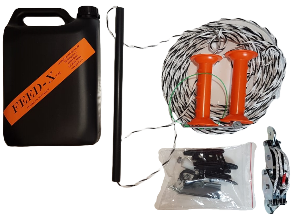 Feed-X - Automatischer Weidezaunöffner mit mechanischer Zeitschaltuhr, Flaschenzug, Elektroseil (3,3 m, einreihig)