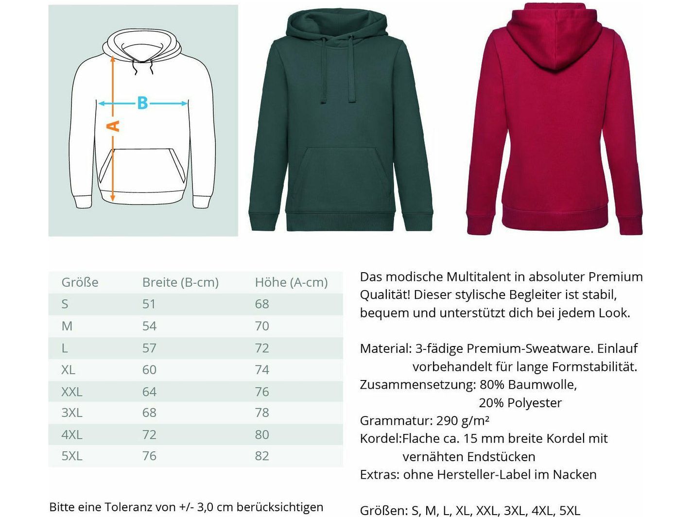 Dieses coole Motiv ist eine tolle Alternative zum alltäglichen Standard. Der Premium-Hoodie eignet sich außerdem perfekt als Geschenk. Wir bieten Qualitätsware auf höchstem Niveau. Einheitliche Farben in allen Männer-, Frauen- und Kindergrößen. Strapazierfähige Stoffqualität: 300g/m² Material: 80% Baumwolle 20% Polyester. Nach erfolgter Bestellung wird dein Produkt exklusiv für dich unmittelbar produziert und innerhalb zwei Werktagen versendet. Somit erhält jeder Kunde ein Einzelstück und wir schonen ganz nebenbei noch die Umwelt, da wir nur dann produzieren wenn eine Bestellung des Produktes erfolgt.