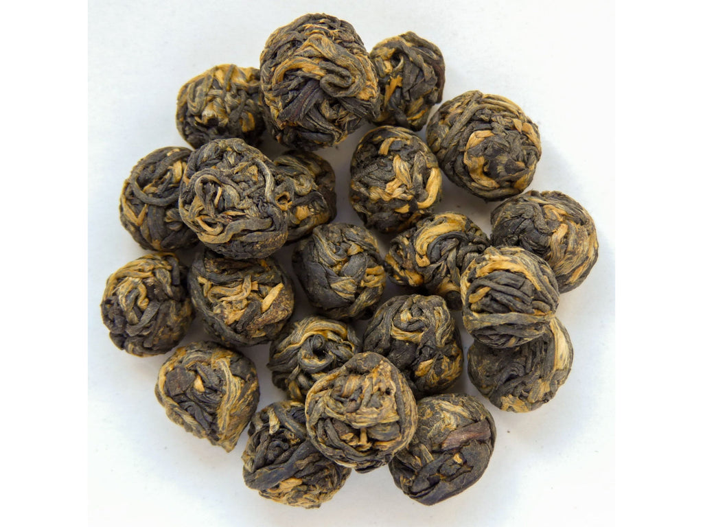 Black Jasmine Pearls. Jasmintee von schwarzem Oolong ist ungewöhnlich, zu Perlen gedreht erst recht. Diese Kombination ist schwer zu finden. Schwarzer bzw. dunkler Oolong ist relativ stark oxidiert und in Geschmack und Farbe dem schwarzen Tee ähnlich.