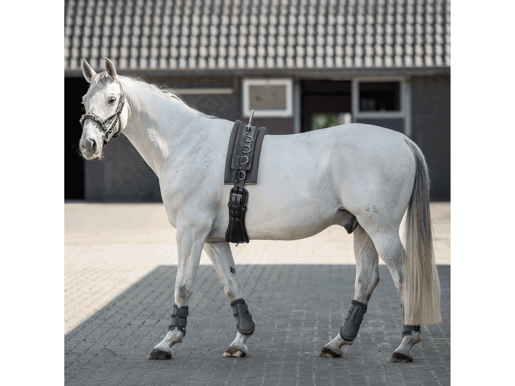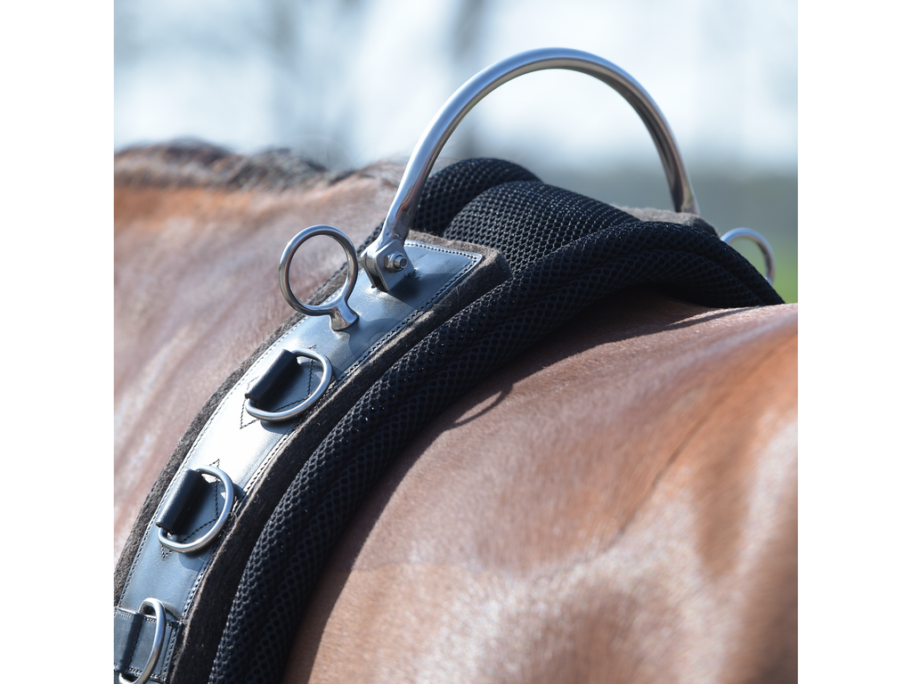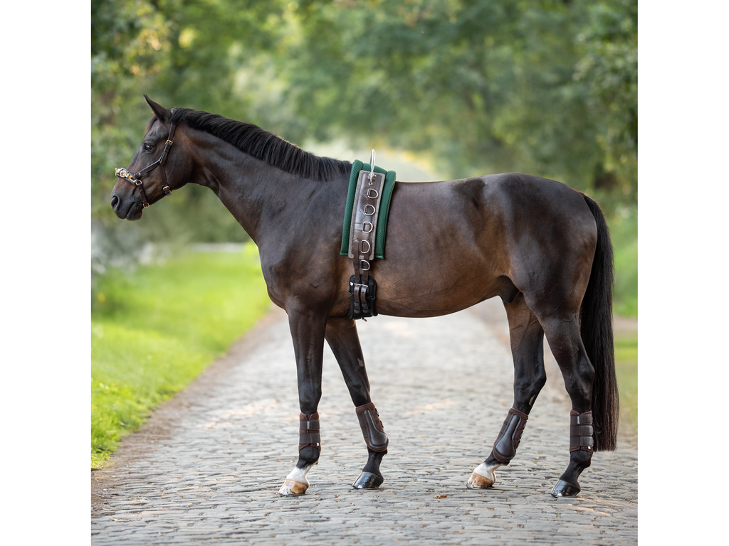 • mit Schabracke und allen herkömmlichen Longiergurtunterlagen, wie der BUSSE Longiergurt-Unterlage 3D Air® Effect verwendbar