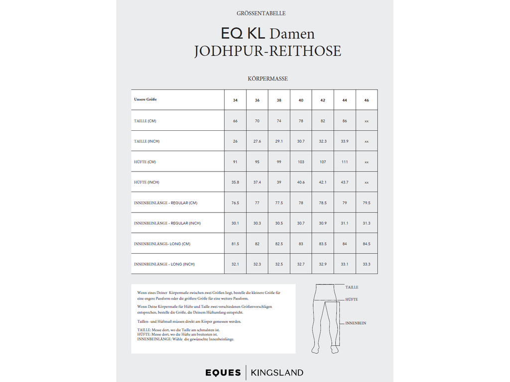 Die EQUES KINGSLAND Jodhpur-Sommerreithose für Damen wurde sorgfältig für die moderne Islandpferde Reiterin entworfen, die Stil ebenso schätzt wie praktische Funktionalität