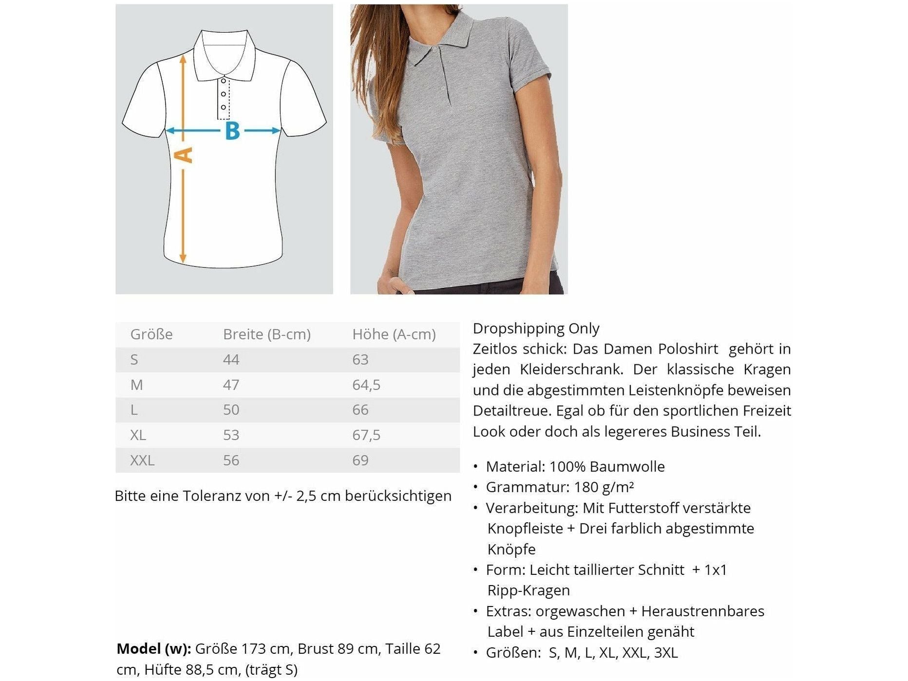 Dieses coole Motiv ist eine schicke Alternative zum alltäglichen Standard. Das Damen Poloshirt eignet sich außerdem perfekt als Geschenk. Wir bieten Qualitätsware auf höchstem Niveau. Strapazierfähige Stoffqualität: 180 g/m² Material: 100% Baumwolle. Nach erfolgter Bestellung wird dein Produkt exklusiv für dich unmittelbar produziert und innerhalb zwei Werktagen versendet. Somit erhält jeder Kunde ein Einzelstück und wir schonen ganz nebenbei noch die Umwelt, da wir nur dann produzieren wenn eine Bestellung des Produktes erfolgt.