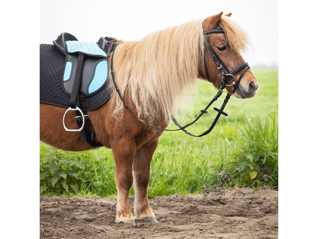 Der QHP Shetland Sattel ist ideal für kleine Reiter, die mit diesem leichten Shetland-Sattel ihr eigenes Pony satteln wollen – Kindersattel komplett mit Sattelgurt, Steigbügelriemen und Steigbügeln