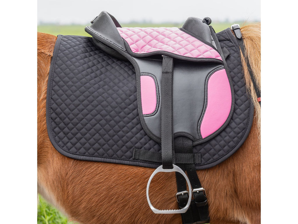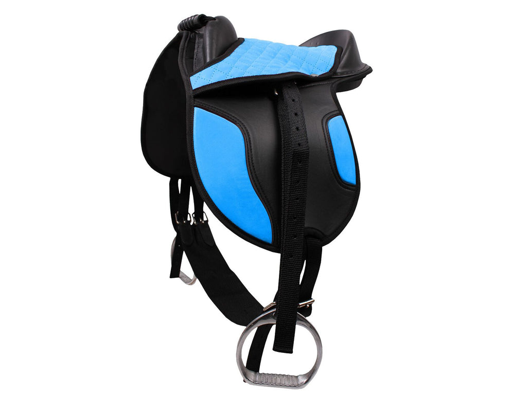 An der Vorderseite des Sattels ist ein Griff integriert, an dem sich die Kinder festhalten können. Der Sattel hat zudem einen Ring am Rücken, an dem ein Schweifriemen befestigt werden kann. Zudem ist der Sattel mit Kissen ausgestattet, die mit Klettverschluss verstellbar sind.